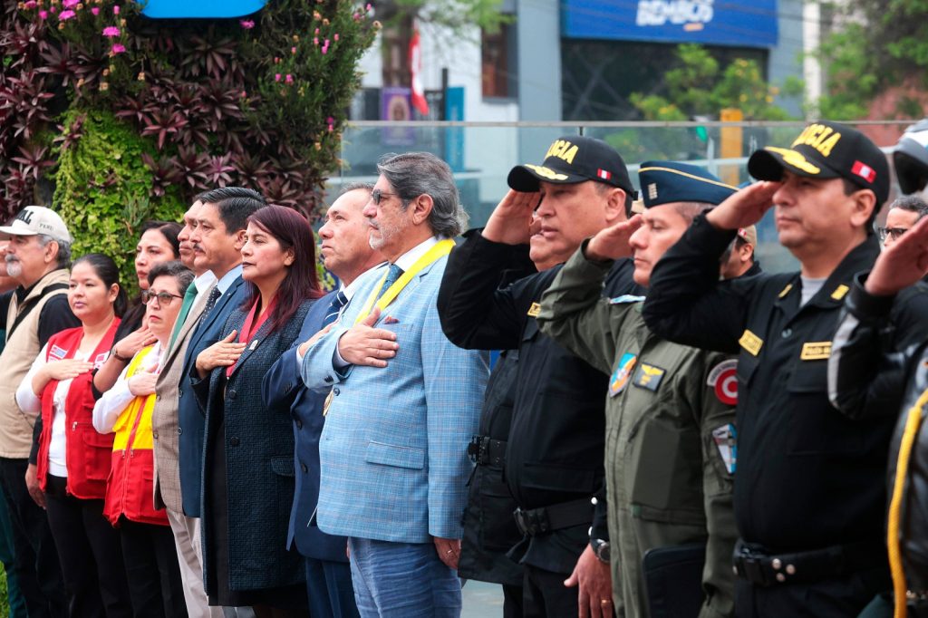 Miraflores, 10 de noviembre de 2025. El alcalde de Miraflores, Carlos Canales Anchorena, presidió la ceremonia de izamiento de la bandera nacional en el parque Kennedy.