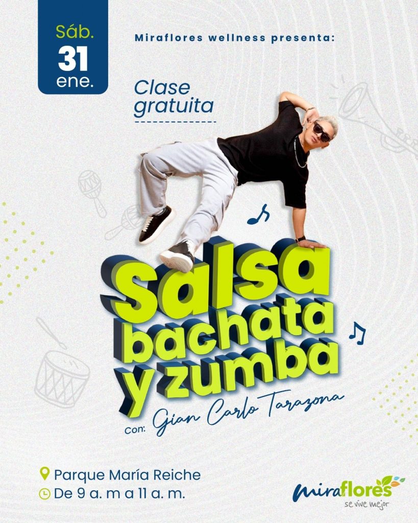 Miraflores, 28 de enero de 2026. Este sábado 30 se realizará una gran jornada de baile moderno en el Parque María Reiche, una actividad pensada para disfrutar, activarse y compartir en comunidad. La cita es desde las 9:00 a. m., con dos horas continuas de clase a cargo del reconocido profesor Gian Carlos Tarazona.