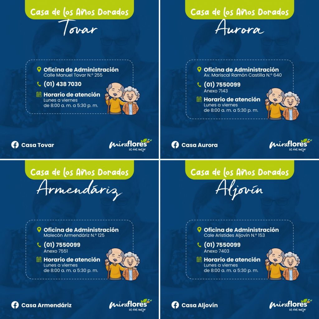 De esta manera, el concejo miraflorino dio luz verde para que el quinto espacio de los años dorados se convierta en una realidad en nuestra jurisdicción. Es importante remarcar que, en la actualidad, el programa CIAM de Miraflores cuenta con cuatro casas para nuestros vecinos mayores: Armendáriz (Malecón Armendáriz 125), Tovar (Manuel Tovar 255), Aurora (Mariscal Castilla 640) y Aljovín (Arístides Aljovín 153).