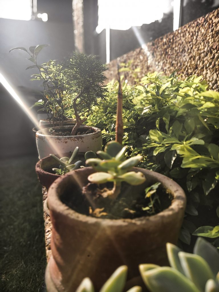 En cuanto a la luz y ubicación, se sugiere proteger las plantas más delicadas del sol intenso, especialmente entre las 12:00 m. y las 4:00 p. m., trasladándolas a espacios con sombra parcial. Agrupar macetas también contribuye a mantener una mayor humedad ambiental, favoreciendo su desarrollo.