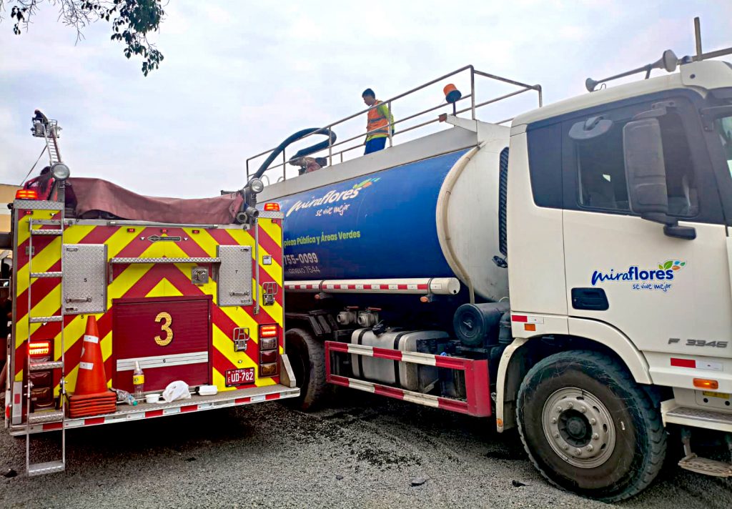 La unidad municipal, habitualmente utilizada para el riego de áreas verdes, fue desplazada durante la mañana hasta el lugar de la emergencia, donde dispuso el traslado y abastecimiento de agua a las unidades del Cuerpo General de Bomberos Voluntarios del Perú (CGBVP), cuyo trabajo ha es clave para evitar la propagación del fuego.