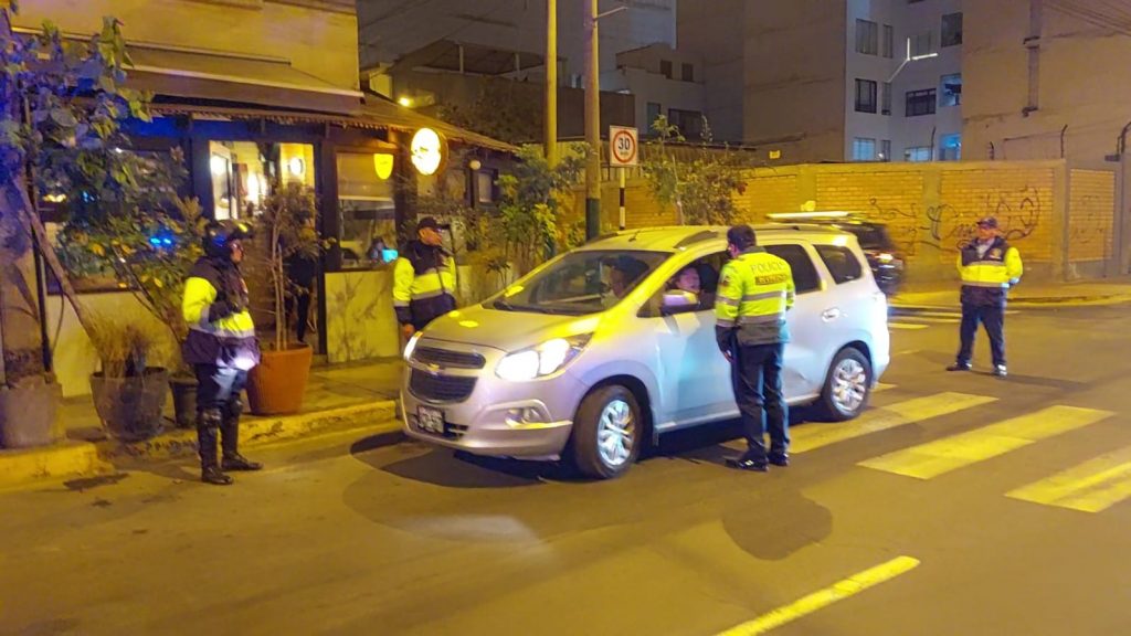 Agentes del Serenazgo y efectivos de la Policía Nacional revisaron calle por calle, para detectar personas que se encuentren dentro de sus vehículos estacionados. Asimismo, se desplazaron en la zona como una forma de disuadir a la delincuencia y evitar casos delictivos en el distrito.