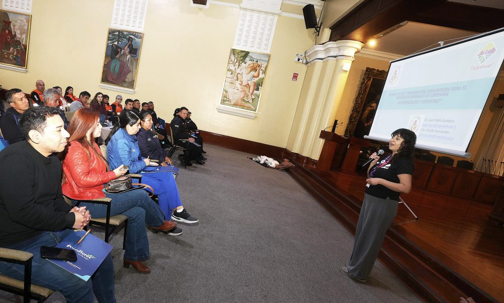 Durante la jornada se contó con la capacitación de la Dra. Giselle Hernández (médico veterinaria y MSc. en Etología Aplicada | Chile), Dr. Juan Pablo Gamboa (médico veterinario clínico y cirujano | Chile) y la Srta. Adriana Molina (monitora comunitaria  | Colombia), quienes compartieron sus conocimientos para atender de forma adecuada a nuestras mascotas (perros y gatos) durante situaciones de emergencias y desastres.
