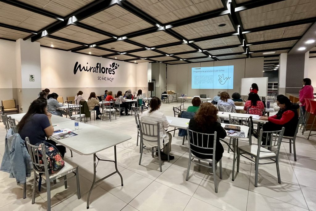 Miraflores, 26 de noviembre de 2025. La municipalidad de Miraflores, en coordinación con el Ministerio de la Mujer y Poblaciones Vulnerables (MIMP), dio inicio al Taller de Formación de Promotores por la Paz, una iniciativa orientada a fortalecer la convivencia saludable, respetuosa y libre de violencia en la comunidad.