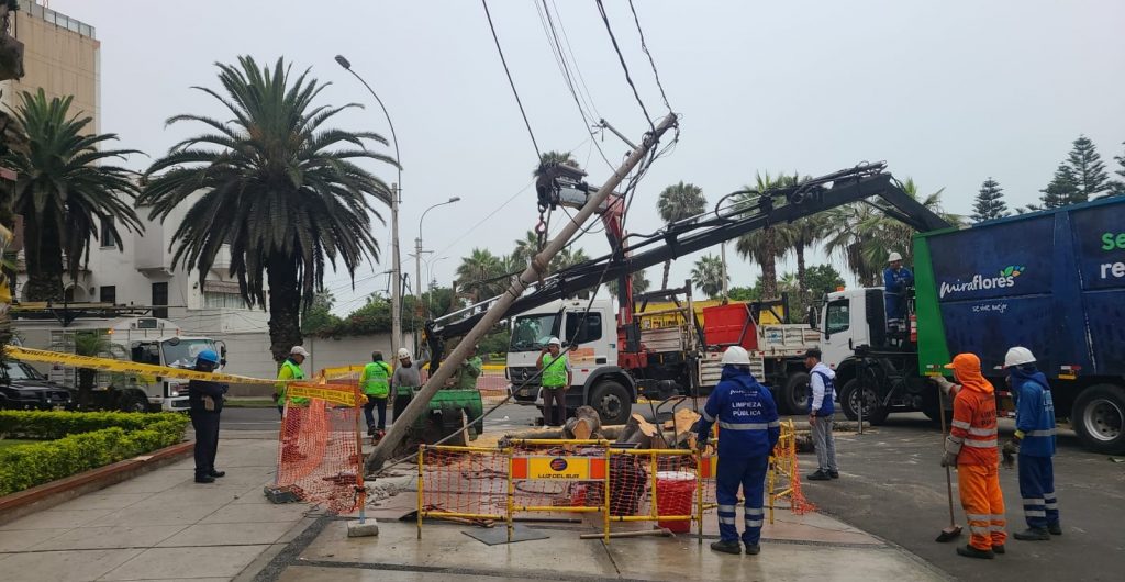Miraflores, 18 de diciembre de 2025.  La filtración de agua potable de una cañería subterránea que sería de Sedapal debilitó el terreno y las raíces de un árbol de la especie caucho de más de 50 años, provocando su caída. El árbol estaba ubicado en el cruce de las calles Madrid, Ramón Zavala y avenida de la Aviación.