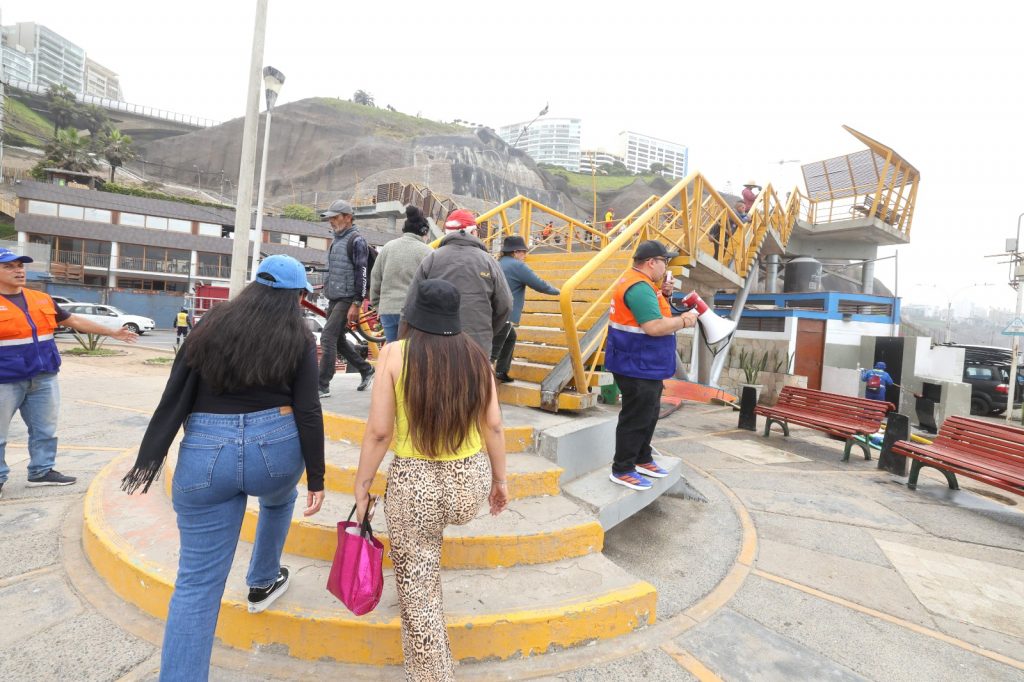 Previo al desarrollo del simulacro, la comuna miraflorina coordinó las acciones con el presidente de la Asociación de Escuelas de Surf de Makaha, Fernando Vidal, así como con los representantes de las escuelas de surf y los encargados de los clubes de playa Waikiki, Pacífico Sur y Terrazas, además del restaurante La Rosa Náutica. Esta articulación permitió asegurar una participación organizada y efectiva de todos los actores vinculados al litoral miraflorino, reforzando el trabajo conjunto.