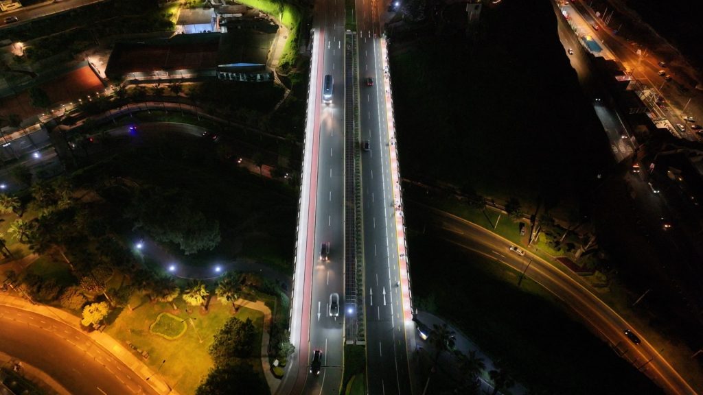 Miraflores, 7 de enero de 2025.- Los puentes Villena y Mellizo lucen, desde finales del 2025, con modernas luminarias LED que brindan mayor visibilidad nocturna y por lo tanto más seguridad para a transitabilidad de conductores, ciclistas y peatones. Un elemento adicional es que la municipalidad de Miraflores colocó las luminarias que inicialmente se instalaron en el Puente de La Paz, optimizando así el uso de los recursos municipales.