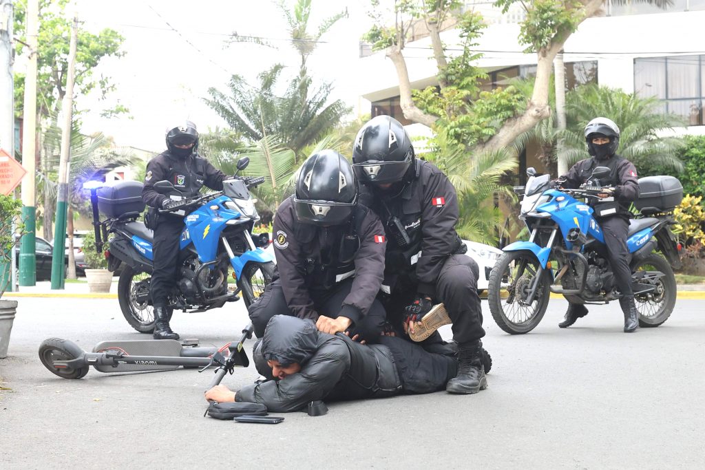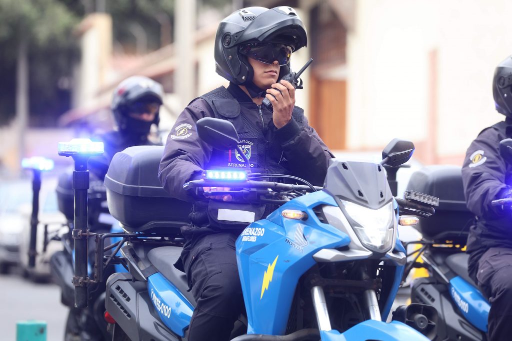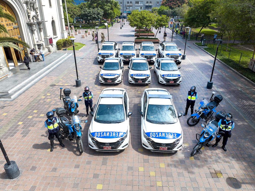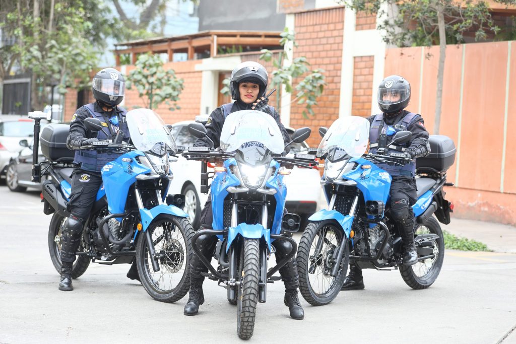 SERENOS MOTORIZADOS: La seguridad  de las calles se intensifica con el patrullaje de 64 serenos a bordo de igual número de motos, por los puntos estratégicos de todo el distrito.