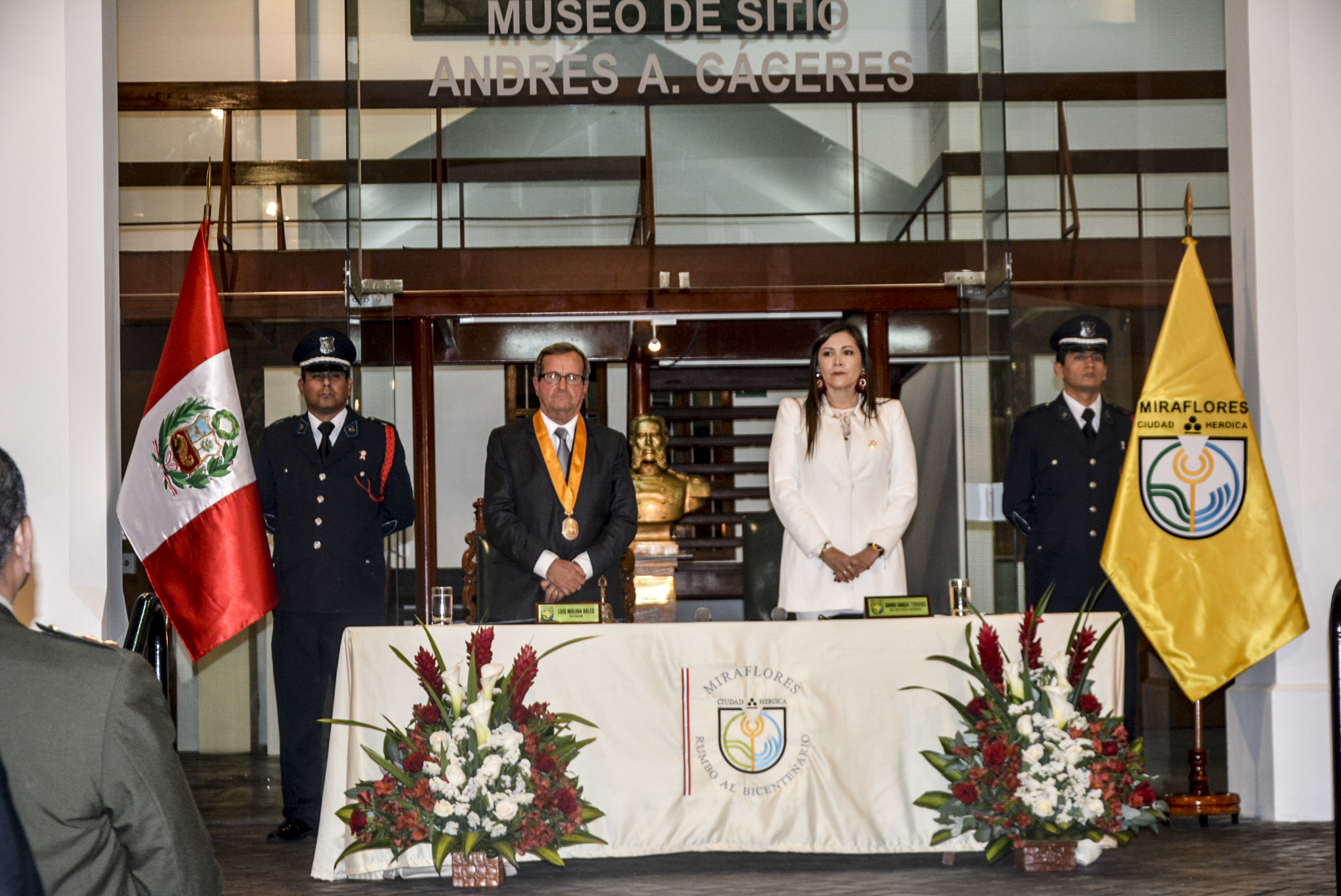 El alcalde de Miraflores Luis Molina Arles, que la presidió, hizo un recuento de las obras que se ejecutan y ejecutarán durante su gestión y expresó: “termino con una frase del general José de San Martín. Sacrificaría mi existencia antes de echar una mancha sobre mi vida pública que se pudiera interpretar como ambición. ¡Viva Miraflores! ¡Viva el Perú! ¡Felices Fiestas Patrias!