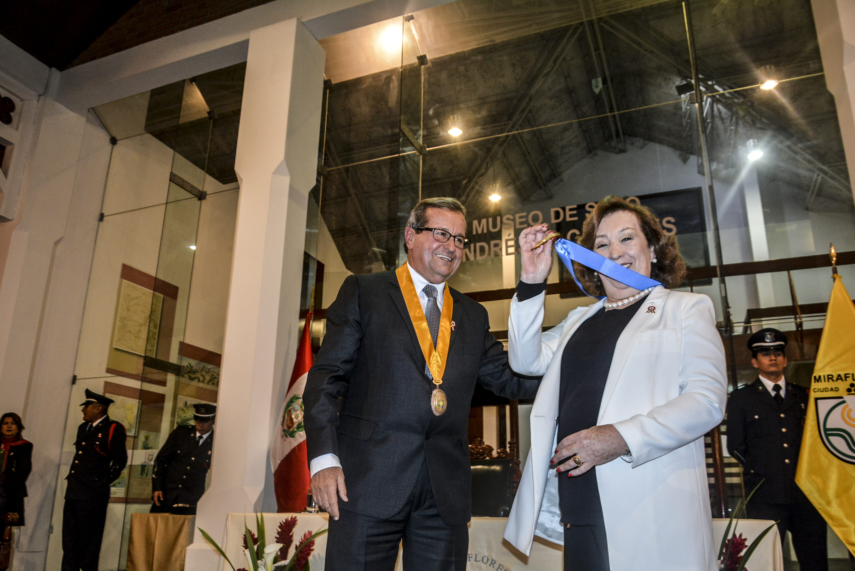 Durante el acto se distinguió a personalidades con la medalla cívica de la ciudad. Cecilia Bákula, embajador Nicolás Roncagliolo, Ernesto Fuentes, Artidoro Cáceres, Jesús Alzamora, Dora Tudela y al almirante Raúl Cerdán, Comandante General de la Marina de Guerra.